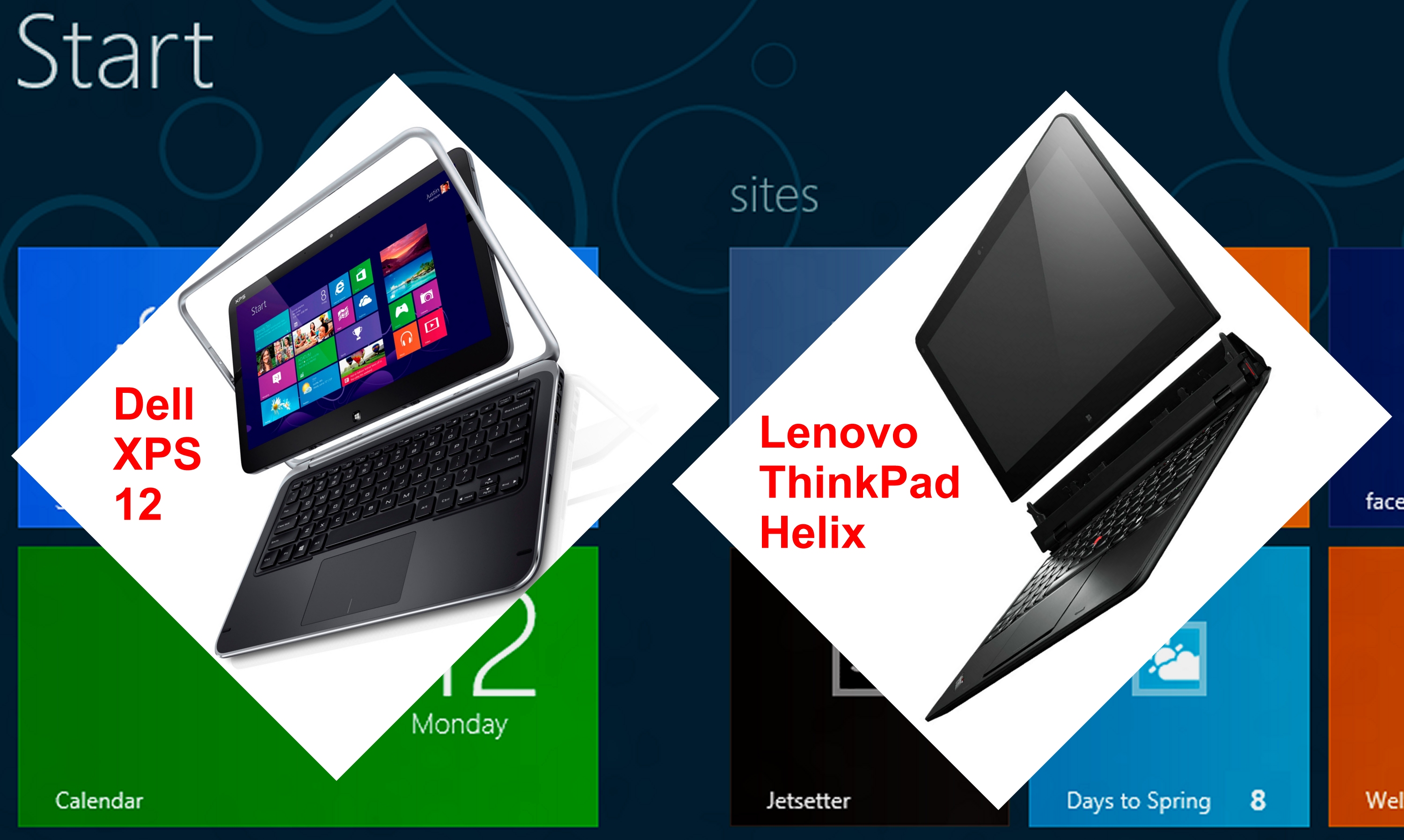 Both the Dell XPS 12 and the ThinkPad Helix should be out around the second week of February.